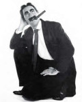 Un hombre del futuro pero con mentalidad del pasado suele desplazarse al trabajo en metro o tren, lo que le permite leer un libro a la semana. Es un bigote pegado a una cara. Esta semana está leyendo "Groucho y yo", narración autobiográfica de Groucho Marx. Las estaciones de transporte subterráneas acostumbran a tener escaleras, muchas escaleras. Peldaños, muchas veces mecánicos que tienes que subir para salir al exterior. Nuestro personaje acostumbra a subirlos de uno en uno, pero hoy, justo después de haber cerrado el libro y haberse bajado del vagón, los ha subido de dos en dos. Nunca sabrá el por qué pero si su resultado: vestido con chaqueta negra 3/4 y subiendo las escaleras de ese modo se ha transformado en un Groucho Marx arqueado por sus andares consistentes en la flexión.