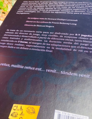 Se trata de un escenario corto para ser disfrutado por 5-7jugadores además del director de juego, muy cinéfilo, de suspense clásico muy documentado y desarrollado a partir de diferentes obras, tanto literarias como teatrales y audiovisuales. La duración media del juego está establecida en 3 horas, al margen de las adaptaciones que el director de juego desee realizar, especialmente en la modalidad de rol en vivo, siempre dada a un debate o revelación final.